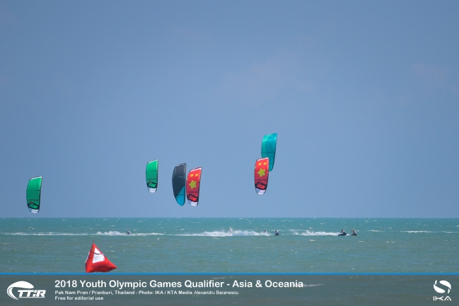 None of the top contenders in the hotly-contested boys’ Asia division at the Youth Olympics Games (YOG) kiteboard racing qualifiers in Thailand had it all their own way in a day of dramatic ups and downs.